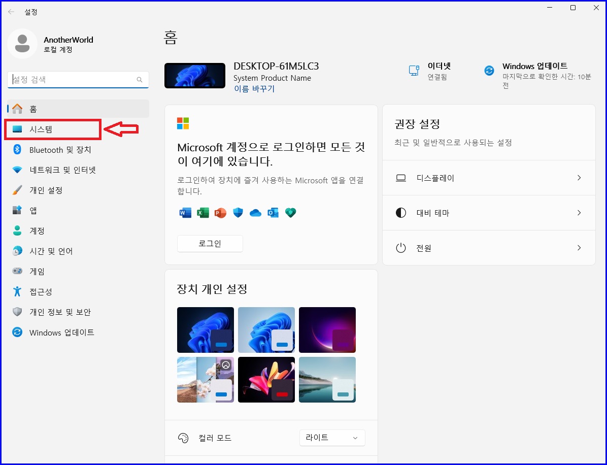 "시스템"을 선택합니다.