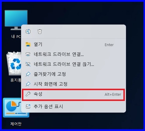 또는 "내 PC"에서 마우스 "우클릭"해서 "속성"을 선택해도 됩니다.