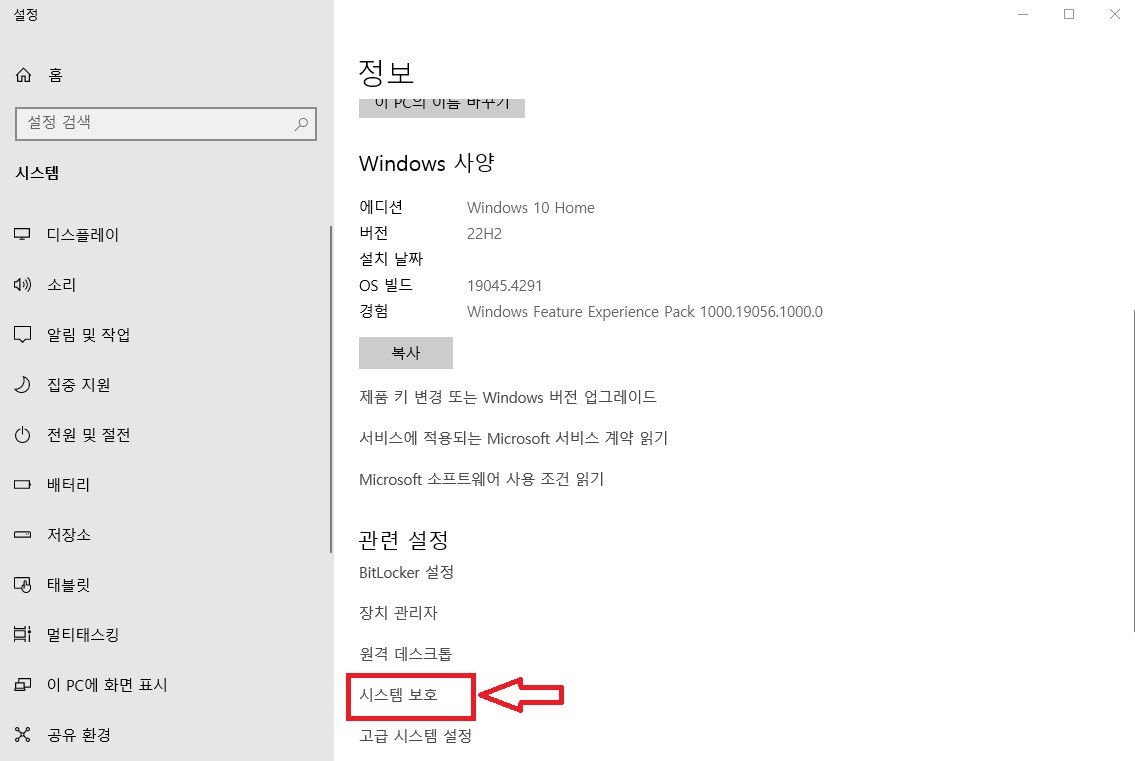 "시스템 보호"를 클릭합니다.