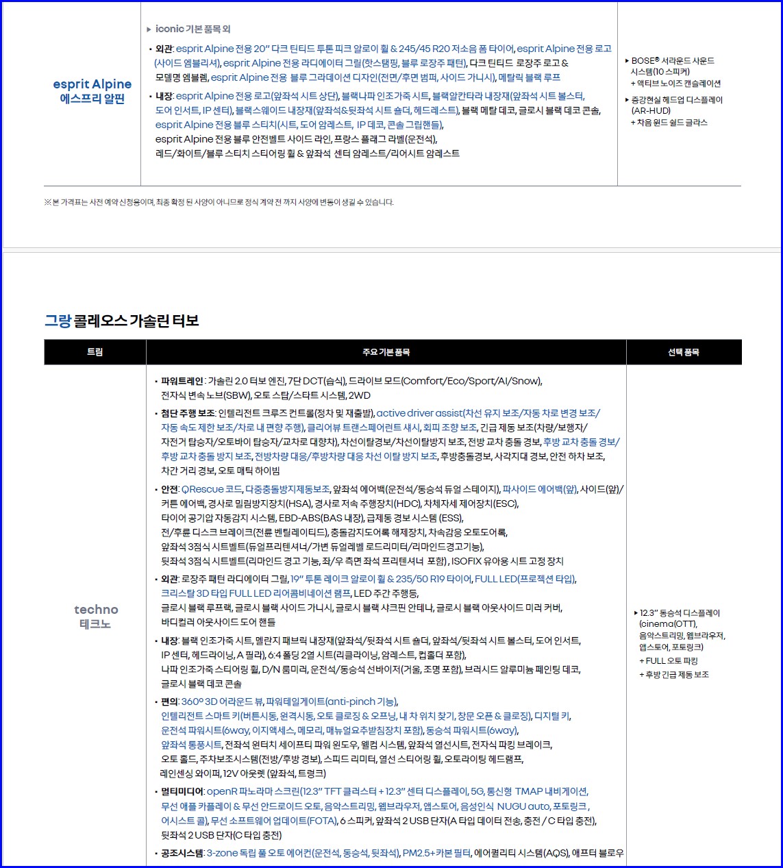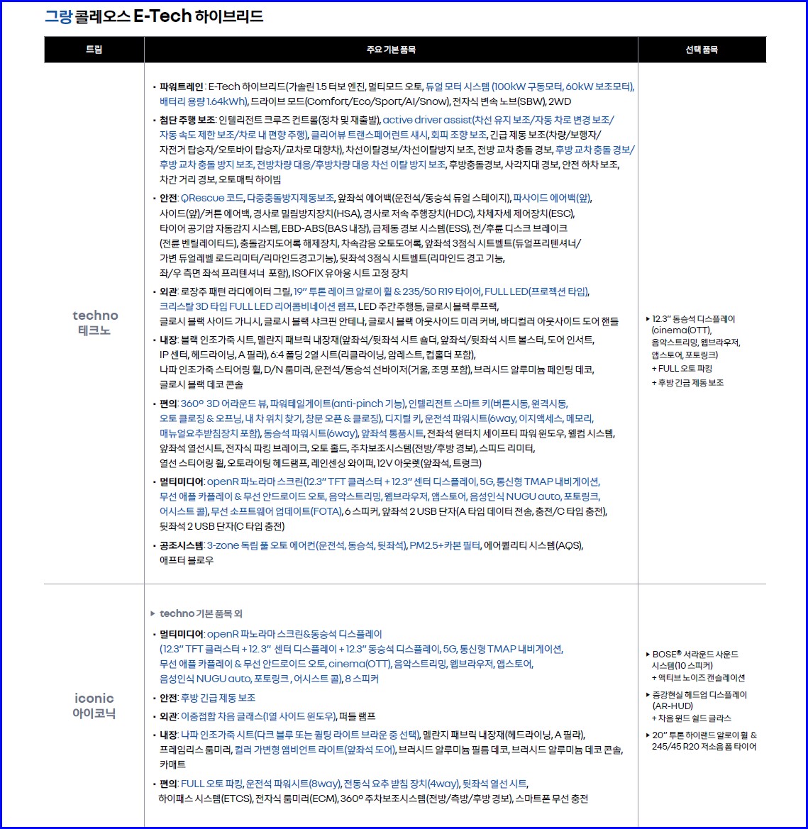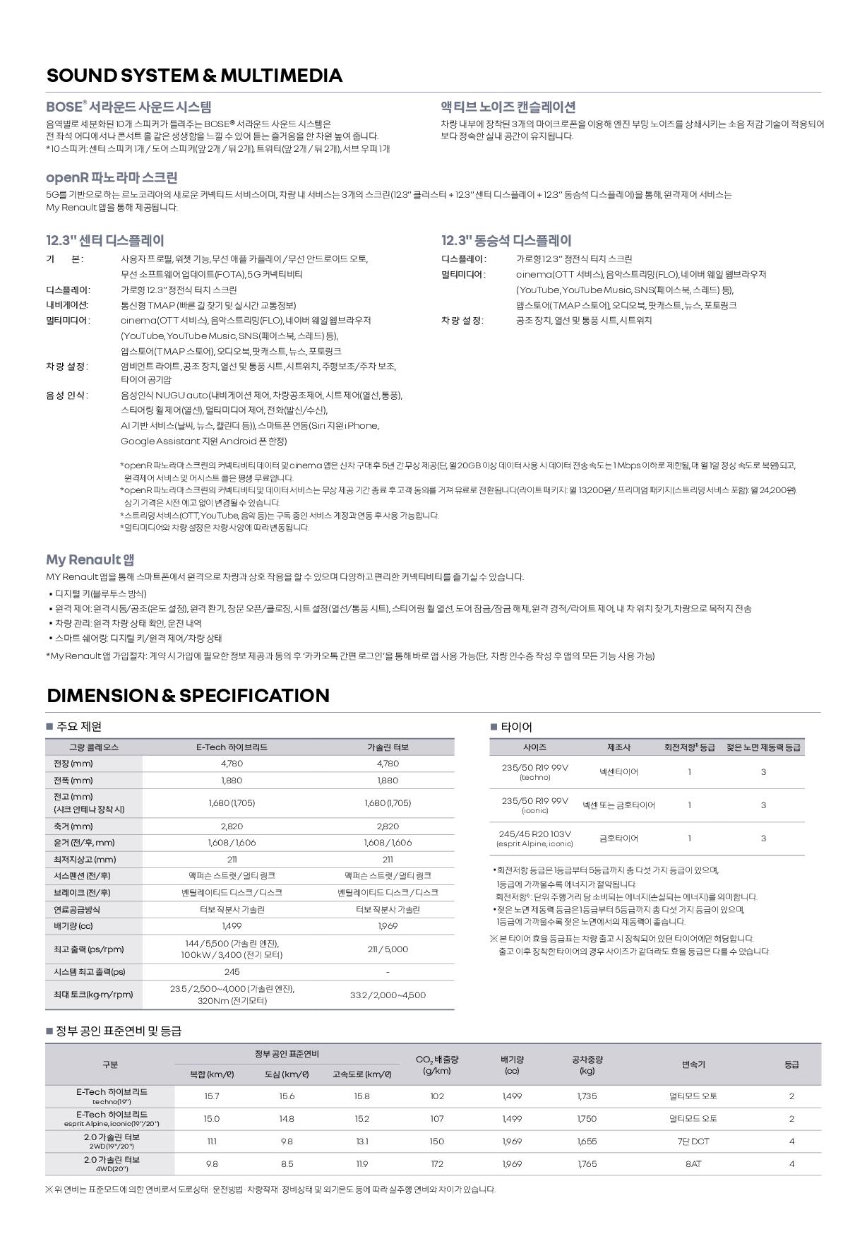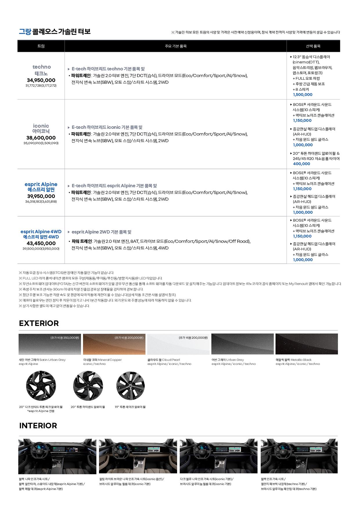 르노에서 작정하고 만든 그랜드 콜레오스 사양표 및 카탈로그입니다.