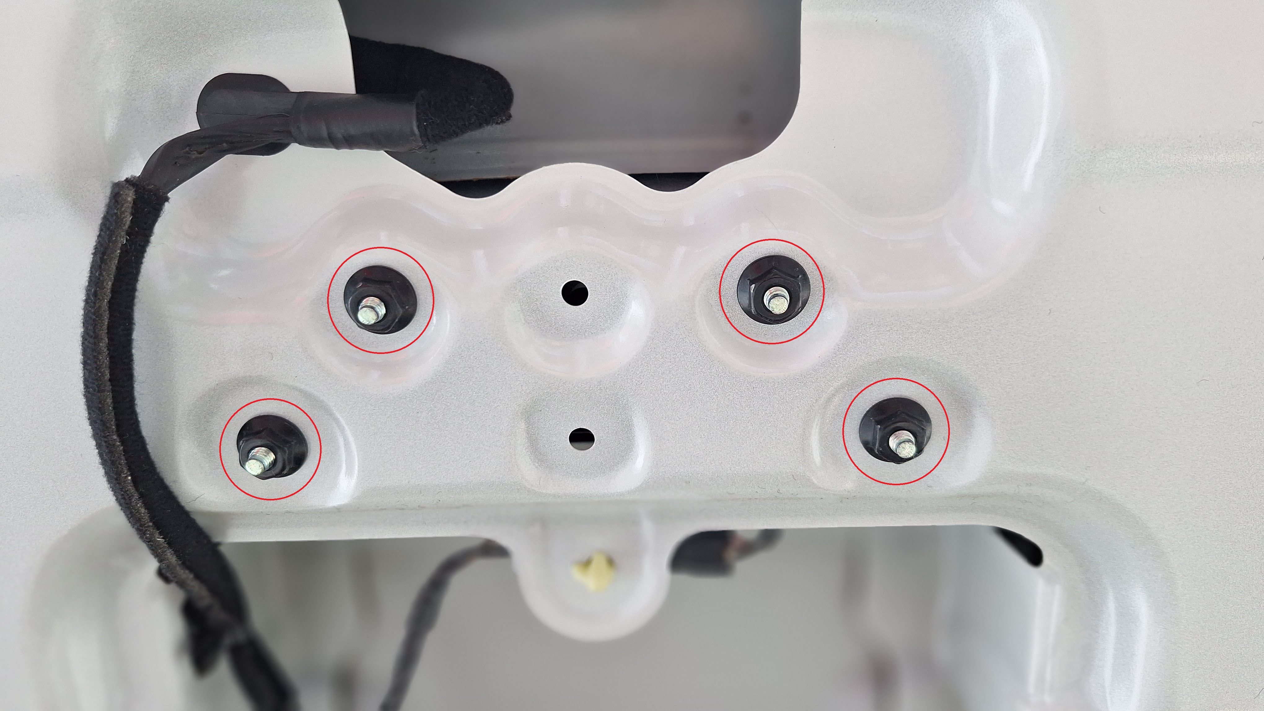 이제 트렁크 손잡이 부분을 분리해야 합니다. 보이는 나사 4개를 스패너로 풀어 줍니다.