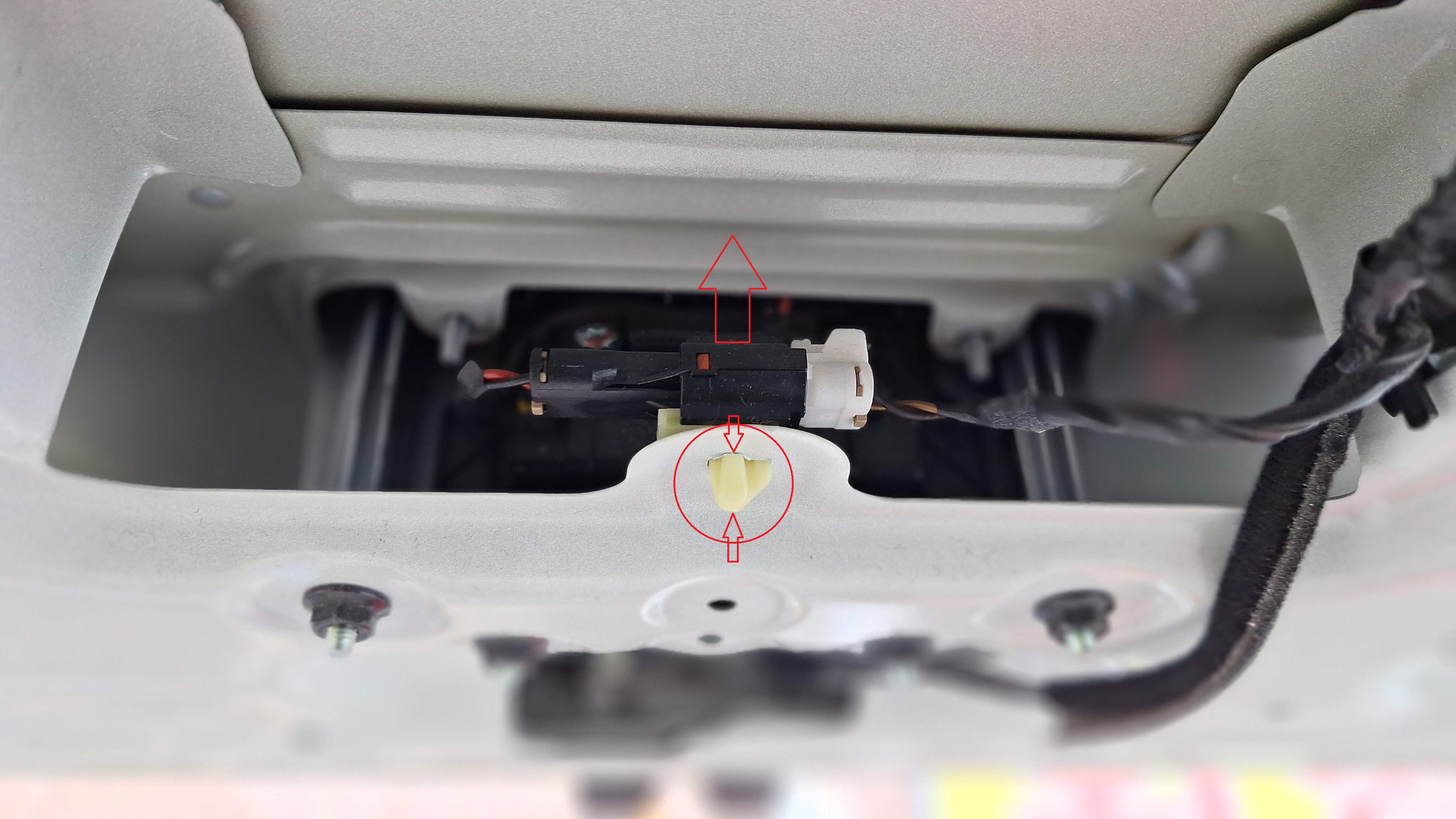 나사 2개를 풀어서 트렁크 스위치를 분리 후, 새 제품으로 교체합니다.