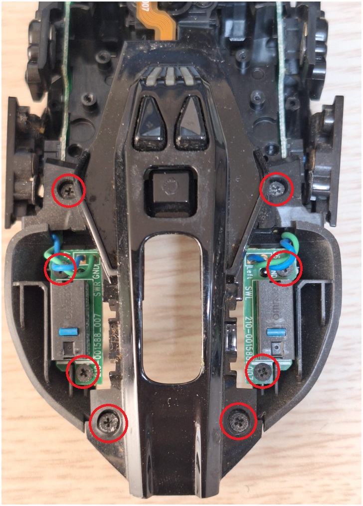마우스 휠 커버도 부탁해 줍니다. 스위치 포함 나사는 총 8개입니다.