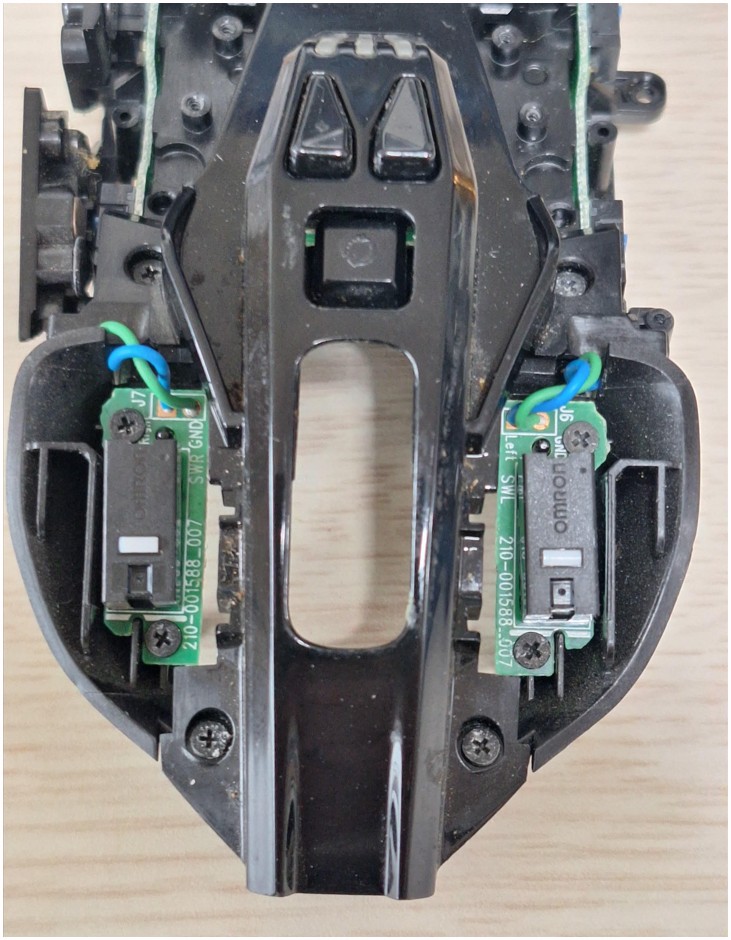 마우스 스위치 다리 부분을 짧게 잘라줍니다.